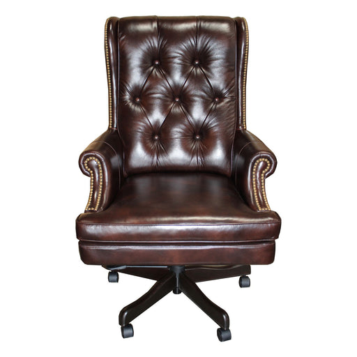 Add fashion and function to your workspace with the timeless style of this desk chair. Crafted in a Top Grain Leather, it features a five-wheel cas...