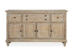 Inspired by inns and wineries in the Napa Valley, the Lancaster dining collection exudes the ambience of a laid-back resort. Crafted of high-low Pine and Hardwood Solids, the soft Dovetail Gray finish and Weathered Bronze hardware mix effortlessly with graceful turned legs and designer details to create a look that is distinctive yet inviting. Adding a casual classic and coastal flair, shutter wood doors are used on the server, and two shutter doors are also on the base of the counter table, with adjustable shelves behind. The distinctive piece selection includes a buffet, server and a dining cabinet with two wood-framed glass doors on the top and two on the bottom, offering 3-way touch lighting control with 2 LED lights. The table options include a 52-inch round and a 68-inch rectangular leg table. The tables can be extended to 70 inches and 86 inches, respectively, with use of a leaf. The rectangular counter table extends to 58W x 36H when the butterfly leaf is used. The versatile seating options include a side chair with upholstered seat and wood slat back, an upholstered seat and back chair, a bench with upholstered seat and wood trim, an elegant shaped chair with wood trim and upholstered seat and back, and counter-height dining chair with upholstered seat and slat back. Take a vacation without leaving home with the resort flavor created by the Lancaster dining collection.