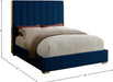 Transform your bedroom into a luxurious place to retired in the evenings with this elegant Becca velvet bed. Featuring a velvet base with channel tufting atop a polished metal frame, this bed makes a bold statement even when incorporated with existing contemporary bedroom decor.