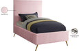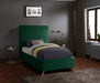 Embolden your bedroom space with this beautiful and colorful Jasmine Bed. A pop of stunning color and chic, sleek velvet upholstery set this bed apart as a distinctively elegant option for your bedroom sanctuary. The contemporary design meshes well with modern decor, making it the ultimate choice for the uber-modern home. Metal legs with a retro slant lend this bed a finished look. Because the bed requires no box spring or foundation, it offers a svelte, minimalist profile.