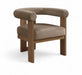 Wrapped in ultra-luxe velvet, the Arienzo upholstered chair captures the elegance of Art Deco design. Its rounded backrest and plush seat rest on sturdy brown walnut-finished solid wood legs for a look that's both sculptural and inviting. A true statement piece, it adds warmth and sophistication to any room.