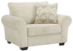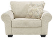 Blending classic elements like sumptuous flared roll arms with tailored box cushions and tapered black feet for up-to-date appeal, this oversized chair exudes that transitional aesthetic that looks and feels right at home. Offering plenty of room for everyone to make themselves comfortable, this large-scale chair is wrapped in a soft, chunky weave fabric loaded in texture. Light and lovely ivory upholstery makes for such an easy-breezy blend.