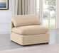 Experience ultimate comfort and style with our velvet Indulge Armless Chair. The luxurious velvet will elevate the aesthetic of any room. This chair provides ample space for you to relax while its modular build offers the option of unlimited configurations. Whether you're looking to add a stylish element to your living room or a comfortable seating option to your bedroom, this chair is the perfect choice.
