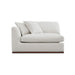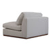 The Rue chair features a generous 70% feather-fill topper within its seat, accompanied by two toss cushions for an added layer of coziness. Its elegant silhouette is highlighted by a rubber wood base, creating a sleek floating appearance, all supported by subtle wooden legs. Designed with extreme comfort in mind, this modular chair embodies easy, neutral styling.