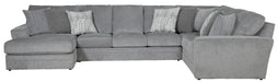 Looking for comfort for the whole family? The Glacier sectional will be a family favorite. Designed to be bigger, deeper and more comfortable this sectional will be your favorite seat in the house. Seats constructed of individually pocketed coils fully encased in foam, topped with a layer of cool gel infused memory foam and wrapped in a layer of synthetic fiber ensures a comfortable and consistent seat for years to come. Over time foam only seats will soften and flatten but our comfort coil seating is designed to last providing a more consistent seat that holds it's shape better than foam only cushions. Accented by the included fashion toss pillows the plush polyester body fabric is soft to the touch but very durable. Our steel tech framing provides another layer of strength and durability to our furniture with tubular steel framing the interior of the seat box and providing a superior anchor for the sinuous spring system. Order today and start enjoying the relaxing comfort of this great sectional.