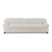 The oversized Halston sofa evokes a nostalgic 80s aesthetic through the relaxed, gathered look of its soft, textured woven fabric upholstery. Sink into its plush form, blending vintage-inspired postmodern design with contemporary repose.