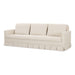 - Box pleat skirt detail, minimal track arm. Back features soft rounded corners
