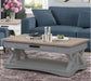 Destined to be the heart of any conversation area, the Americana Modern Cocktail Table is a must-have. Crafted in a soft finish, it features a contrasting wood-grain top in Weathered Natural. A lower open area is perfect for storage and display while a center drawer and crossbeam design touches give it endless appeal.