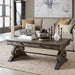 Old World charm abounds in the Bellamy table collection. Gracious S-curved carved bases support overlaid solid pine tops finished in vintage inspired Deep Weathered Pine.