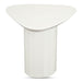 The Eden accent table features a rounded triangular shape and oval pedestal base, creating a sculptural silhouette that exudes modern sophistication. An ivory white and black high gloss finishes this table's surface, reflecting light, brightening and opening up any space.