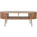An entirely practical mid-century modern design with clean lines, tapered legs, and a gently rounded, smooth silhouette. This solid oak, lightly finished coffee table features gated paneling that details its spacious storage areas. A beautiful nod to 1950s décor, this versatile style works from room to room, centerfold as a coffee table or under the window with plants and sunlight.