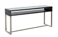 Upgrade your urban loft with our Langston collection. Made with both glass and metal accents, it's crafted from cathedral and quartered oak veneer. Each piece complements your modern aesthetic with a seamless design and no hardware. The Langston collection includes a cocktail table, rectangular end table, and sofa table that create a spacious and sophisticated living space. Enhance your home today with our sleek and functional Langston collection.