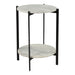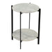 A modest piece of living room décor, the Melanie accent table keeps its class through tonal shades. Beautiful white marble slabs are held together by a two-tiered iron base with a matte-black finish. The end result of the Melanie accent table is a subtle contemporary piece that can be used for adding plant décor on one layer, and resting your coffee on the other.