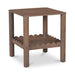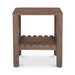 Modern aesthetics effortlessly blend with the refined simplicity of traditional Shaker design in the Wiley side table. Meticulously crafted, its elegant form is defined by sleek, geometric curves that add a captivating touch of modernity. The post legs stand as pillars of strength, grounding the side table with their understated presence. A showcase of intricate scalloped edge details to the face of the exposed lower shelf lends a timeless charm reminiscent of classical influences.