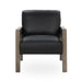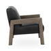 This accent chair pairs clean lines with high-quality materials for a refined, modern look. Upholstered in rich top grain leather, the seat offers lasting comfort, while the angular frame is crafted from sturdy rubberwood with a weathered finish for a natural, organic touch. Ideal for contemporary, transitional, or urban interiors, this leather and wood accent chair adds a grounded elegance to living rooms, offices, or cozy reading spaces.