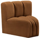 Give your living room or den the perfect blend of style and versatility with this Arc velvet fabric curved corner chair. Part of the Arc modular furniture collection, this chair comes upholstered in rich saddle velvet fabric and features deep channel tufting that adds a touch of luxury while enhancing comfort and support. A seamless combination of form and function, this chair can be used with other Arc pieces to create a myriad of configurations in your well-curated room.