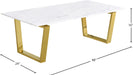 The Cameron table, by Meridian Furniture. Featuring a beautiful contemporary design. Constructed of gold finished stainless steel and solid stone top, it's guaranteed to be the highlight of any room.