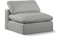 Give your space a whole new look with this Comfy linen textured fabric armless chair. This handsome chair fits nicely with other items in the Comfy collection and is a versatile seating option designed for adaptability, comfort and style. Wrapped in rich durable linen textured fabric upholstery, this chair offers a plush embrace of overstuffed down feather cushions, carefully crafted to deliver the highest level of comfort. The perfect seat for creating an oasis for relaxation, this chair has thick foam surrounding its frame for added support and coziness.