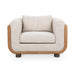 Elevate your space with this modern barrel accent chair, upholstered in soft polyester fabric with luxurious leather side lining and a sturdy rubber wood base. The rounded silhouette and plush cushion offer comfort and contemporary flair, making it perfect for stylish living rooms or reading nooks. This upholstered barrel chair blends texture and design.