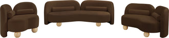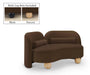 A cloud-like oasis of comfort, the Daphne velvet loveseat is a modern sensation. Its plush upholstery invites you to sink in and relax, while the curved design offers both support and opulence. The loveseat's unique silhouette is complemented by a choice of black or natural wooden legs, allowing you to customize it to your personal taste. Whether you're looking for a stylish accent piece or a comfortable spot to unwind, the Daphne loveseat is the perfect choice.