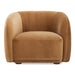 Constructed from solid beech and plywood, the Faye accent chair's unique curved back and firm, fixed bench seat rest on petite, rounded rubberwood legs. The neutral tan and faux mohair fabric is denser and more plush than velvet, bringing durability and comfort to its contemporary form--a touch of elegance to expansive living.