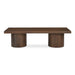 Reclaimed neem wood takes center stage in the Hadley coffee table as each piece tells its own story of thoughtful craftsmanship. The 2-inch thick rectangular top, supported by robust cylindrical bases, creates a grounded yet graceful silhouette.