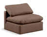 Experience ultimate comfort and style with our vegan leather Indulge Armless Chair. The luxurious vegan leather will elevate the aesthetic of any room. This chair provides ample space for you to relax while its modular build offers the option of unlimited configurations. Whether you're looking to add a stylish element to your living room or a comfortable seating option to your bedroom, this chair is the perfect choice.