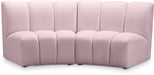 Create a seating group that works for every possible situation with this Infinity modular love seat and other pieces in the Infinity collection. Upholstered in soft velvet material that feels great against the skin and offers long-wearing beauty, this piece fits with other Infinity items for an infinite number of combinations that get your seating requirements just right but that look just as nice when used on their own.