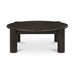 Built to round things out. A solid oak top with a smooth bullnose edge meets four sculptural column legs in a bold joinery detail that’s all craft and confidence. The legs add weight and definition to the rounded form, striking a balance between soft curves and strong structure. Finished in a wire-brushed dark brown, it’s grounded, sculptural, and made to hold the room and the conversation.