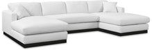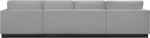 Gather your whole crew for family movie night on this Johanna linen textured fabric sectional sofa. Upholstered in rich linen textured fabric and featuring a natural finish solid wood base, this sectional exudes a mid-century charm that's both elegant and comfortable. The eucalyptus wood frame provides durability and ensures lasting performance and use, while the plush seat and pillowy back cushions offer a cozy seating experience.