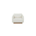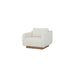 The Keane lounge chair's oversized silhouette invites serene repose, with gentle slopes and soft curves cradling the body. An elevated rubber wood plinth base is enhanced by wire brush finishing, while the plush back cushion promises enduring comfort.
