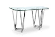 Offset geometric squares are intermingled to create dramatic play with light for the modern Lenox Square table trio. Policed chrome plated base, topped with 12mm clear tempered glass with 1" bevel. Eye catching and a conversation starter.
