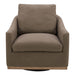 The Linden swivel chair features a curved barrel back paired with a generously sized toss cushion support. A smooth, solid wood base completes the look with a 360° swivel function for an updated, sophisticated feel.