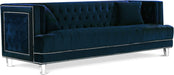 The Lucas Collection by Meridian Furniture. Features beautifully tufted velvet upholstery with a custom nail head design and clear acrylic legs. This collection is guaranteed to be the highlight of any home.