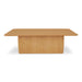 The Winston coffee table's commanding plinth base features softly rounded edges at all four corners, offering a hefty, substantial design poised to be the centerpiece of any space. Finished in a rustic oak veneer with expressive knots highlighting the wood's natural charm, it crafts a striking contrast between old and new.