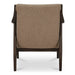 The Yates accent chair's solid oak frame and sumptuous faux shearling merge the coziness of plush upholstery with the timeless beauty of classic craftsmanship. Its deep brown finish enhances the wood's natural grain, offering traditional charm to its slim, mid-century design. The curved, slender arms broaden for restful support, balancing the chair's sleek profile with practicality.