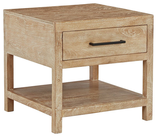 Signature Design by Ashley®Make life simple in style with this square end table. Its classic geometric construction gets a bit of flair with a hand-applied whitewash finish t...