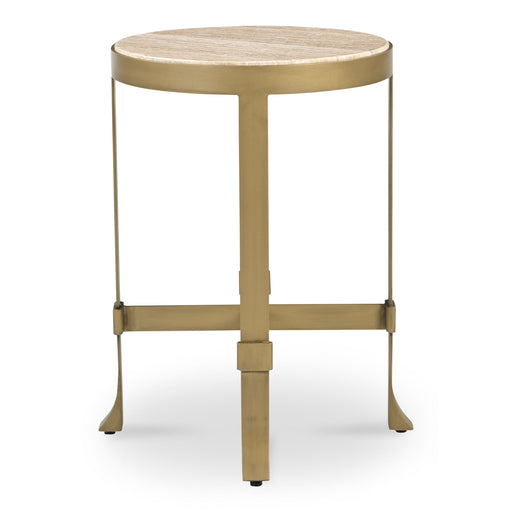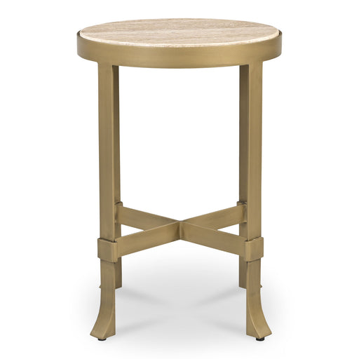 Moe's Home CollectionThe Holli side table blends timeless travertine with sleek iron, as its organic top rests within a subtle metal rim. The antique gold base, featuri...