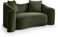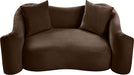 Indulge in pure luxury with the Destin velvet loveseat, featuring plush, oversized cushions and soft velvet upholstery for optimal comfort. Wrap yourself in comfort with a structural masterpiece offering a refreshing yet timeless aesthetic. The organic curves and plush velvet create a truly unique and eye-catching design.