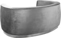 The Julian Collection by Meridian Furniture. Features beautifully upholstered velvet with a shiny stainless steel base. Using the highest quality velvets this set is sure to stun your guests.