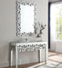 Bring contemporary panache to your home's decor with this mirror. This beautiful mirror has an intertwined geometric frame that draws the eye and stirs excitement in your space. The mirror's oversized footprint ensures that it becomes a fast focal point on your wall or when hung above a console table in a foyer or entryway. Pair it with the Aria table from Meridian Furniture for a complete look.