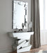 Reflect your exquisite taste with this beautiful Jade mirror. This mirror from Meridian Furniture features a staggered geometric design around its frame that's composed of multiple squares and rectangles, lending it a modern aesthetic that catches the eye. The frame's surface is also mirrored, so the overall effect is nothing short of stunning. Hang it on a focal wall, or combine it with other items in the same collection for a cohesive look.