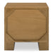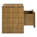 The nightstand’s striking geometry brings out the oak wood's mid-tone brown finish to blend seamlessly into various interiors with its subtle sophistication. This piece features a unique geometric arrangement with a top drawer composed of a single geometric row and a larger drawer comprised of three geometric rows beneath while maintaining a light, unbulky feel.