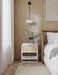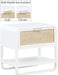 Add a natural touch to your bedroom space with this Sage wood veneer night stand from Meridian Furniture. This rectangular night stand features rich ash wood veneer with a finish, ensuring it complements your existing bedroom decor. A natural cane drawer front gives a unique touch to this piece, as well as providing you with plenty of storage space. A shelf beneath the drawer provides additional storage space if needed.