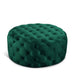 Rest weary legs at day's end atop the welcoming comfort of this Addison velvet ottoman. This Hollywood-inspired ottoman features deep button tufting from top to bottom for a luxe look and is covered in velvety upholstery for added glam. The vibrant color makes a bold statement in your space. This substantially sized ottoman also doubles as an extra seat and is padded thickly for supreme comfort.