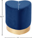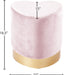 Show your room a little love with this heart-shaped ottoman/stool. The beautiful-colored upholstery covering the top and sides of this ottoman is sumptuous to the feel, ensuring its luxurious look from all angles. Thetone base complements the of the stool, adding a distinct contrast to the presentation. The velvet material is rich and sleek, so it pampers your feet while you prop them up at day's end.