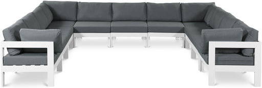 Meridian FurnitureNizuc Waterproof Fabric Outdoor Patio Modular 11 PC Sectional Nizuc - Outdoor Patio 11 Piece Modular Sectional With White Frame - Gray150.0"W x 120...