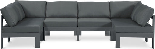 Meridian FurnitureNizuc Modular Sectional 6PC Waterproof Fabric Outdoor Patio Nizuc - Outdoor Patio 6 Piece Modular Sectional With Gray Frame - Gray120.0"W x 90.0"D ...