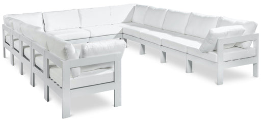 Meridian FurnitureNizuc Sectional Waterproof Fabric Outdoor Patio Modular Nizuc - Outdoor Patio 10 Piece Modular Corner Sectional With White Frame - Gray180.0"W x 15...