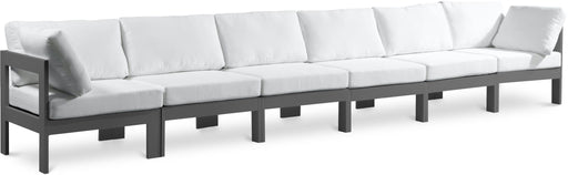 Meridian FurnitureNizuc - Modular Sofa Waterproof Fabric Outdoor Patio Nizuc - Outdoor Patio 6 Piece Modular Sofa With White Frame - Gray180.0"W x 30.0"D x 34.0"H - ...